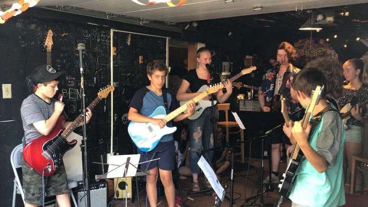 Join our rock band class that brings instruments and talent together for dynamic group rehearsals. Collaborate with fellow musicians and learn songs from rehearsal to performance. Register now to start rocking with a band.